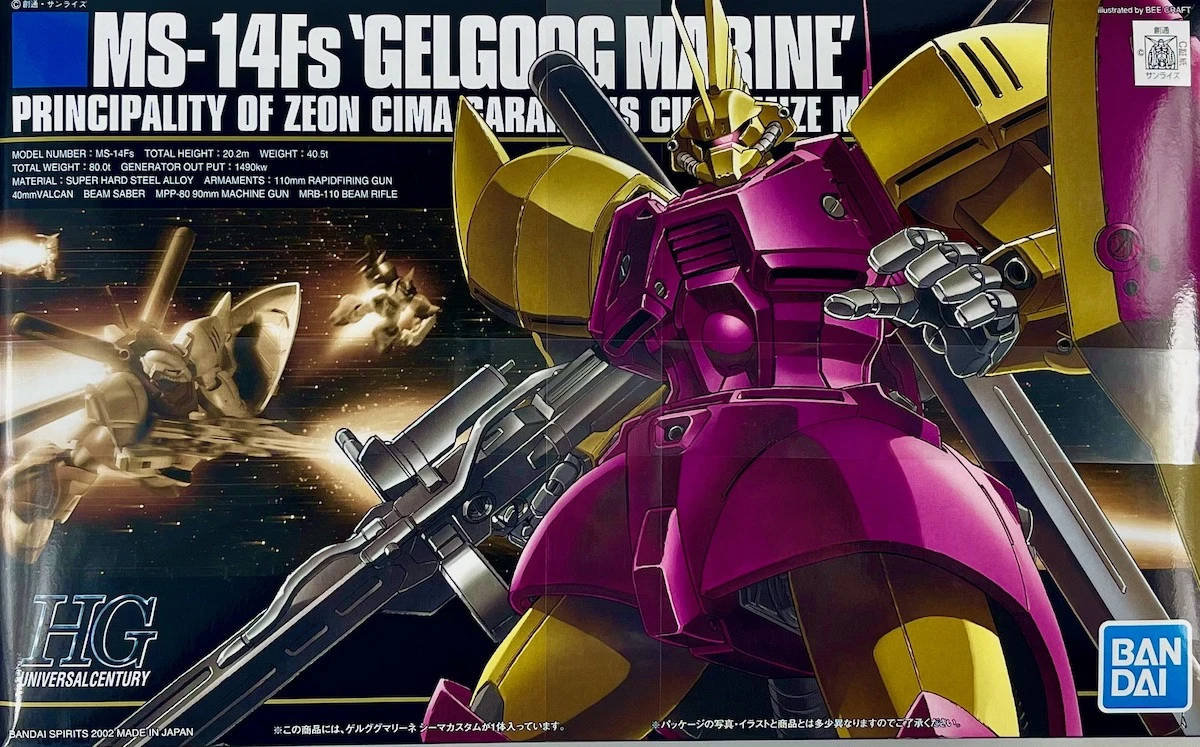 1/144 HGUC GELGOOG MARINE CIMAGARAHA Gut detaillierter Bausatz, bestens für Einsteiger geeignet.- Kein bemalen oder kleben notwendig.- Bausatz kommt in Farbe und muss nur zusammengesteckt werden. – Zusammengebaut circa 14 cm groß- ca.80 bis 200 TeileWarnhinweiseAchtung: Dieser Bausatz ist kein Spielzeug! Nicht für Kinder unter 36 Monaten geeignet, enthält verschluckbare Kleinteile. Erstickungsgefahr!